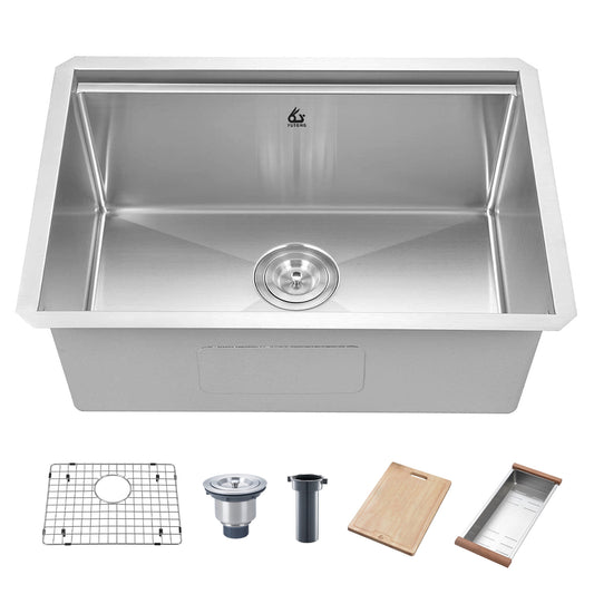 Yutong 28" x 18" Undermount Stainless Steel Single Bowl 18 Gauge Undermount Workstation Kitchen Sink